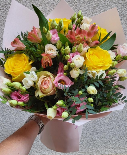Alsztromeriából, rózsából és lizianthuszból készült csokor. (rendelkezésünkre álló színben szállítjuk) A feltüntetett ár tartalmazza: a díszítést, az üdvözlőkártyát és a házhoz szállítás díját Debrecen területén! (Házhoz szállítást Hajdú-Bihar vármegye egész területén vállalunk!) Rendelését telefonon is leadhatja! - Apropó Virágbolt Debrecen